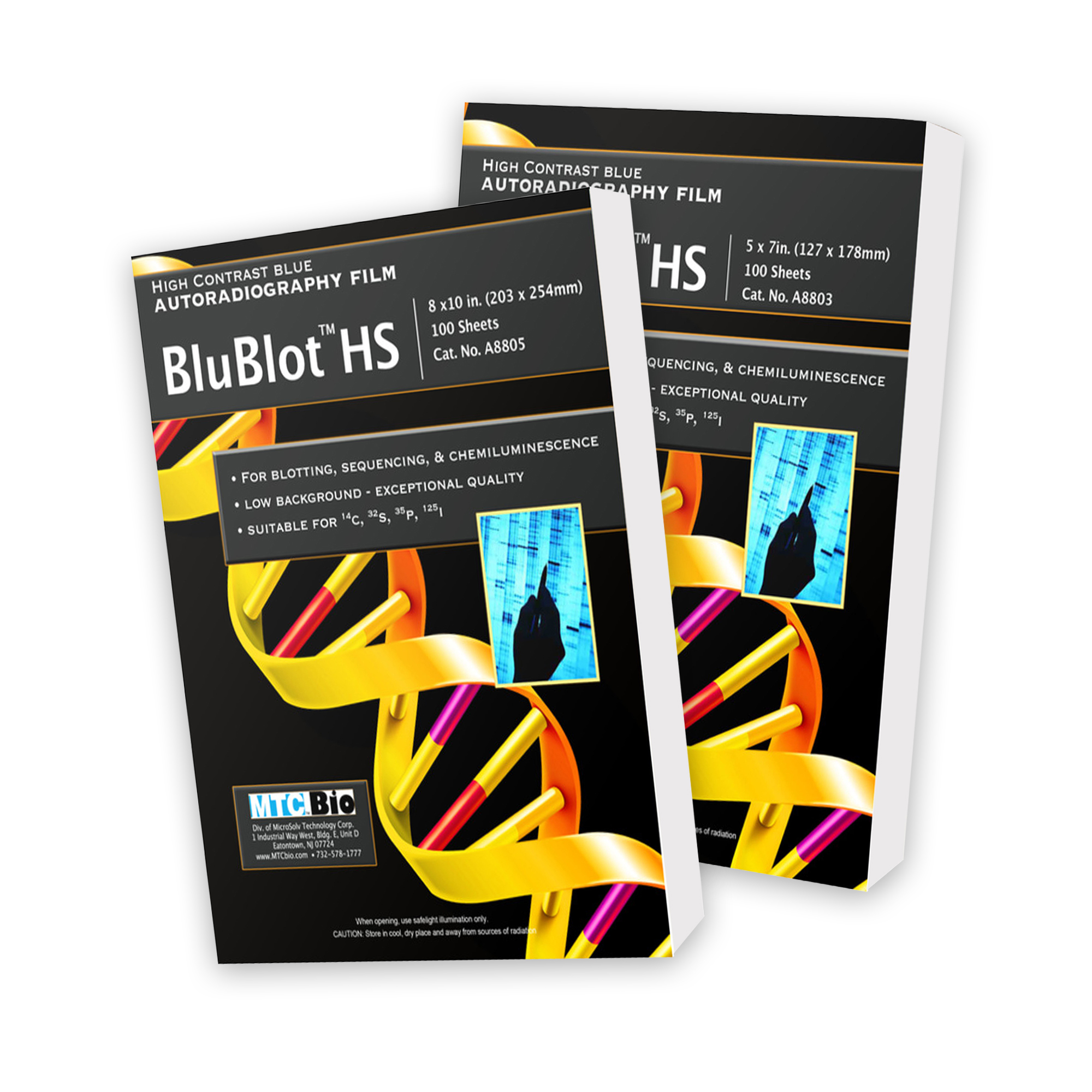 BluBlot HS exhibits excellent sensitivity and contrast characteristics and is coated on both sides for improved consistency and overall performance. It reliably produces sharp, bright images that are easily visualized and suitable for publication. Especially useful with chemiluminescence, BluBlot HS works well with 14C, 32P, 33P, 125I, and 35S. Compatible with automatic processors and manual development methods, BluBlot HS compares directly with films costing up to 3 times as much. With a shelf life of 2 years from date of production, BluBlot HS is packaged in lined, light-safe dispenser boxes of 100 sheets per box.