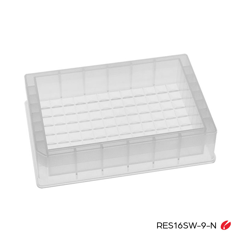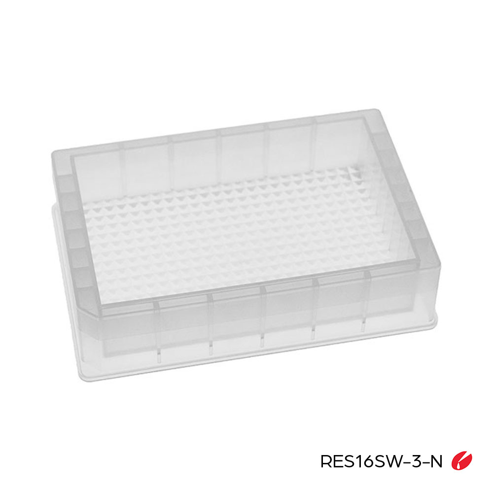 | RES19SW-96-N | Reservoir, Mid Height, single well with 96 indentations, 150mL, Natural, Non-Sterile | 50 / Case | $258.50 |
