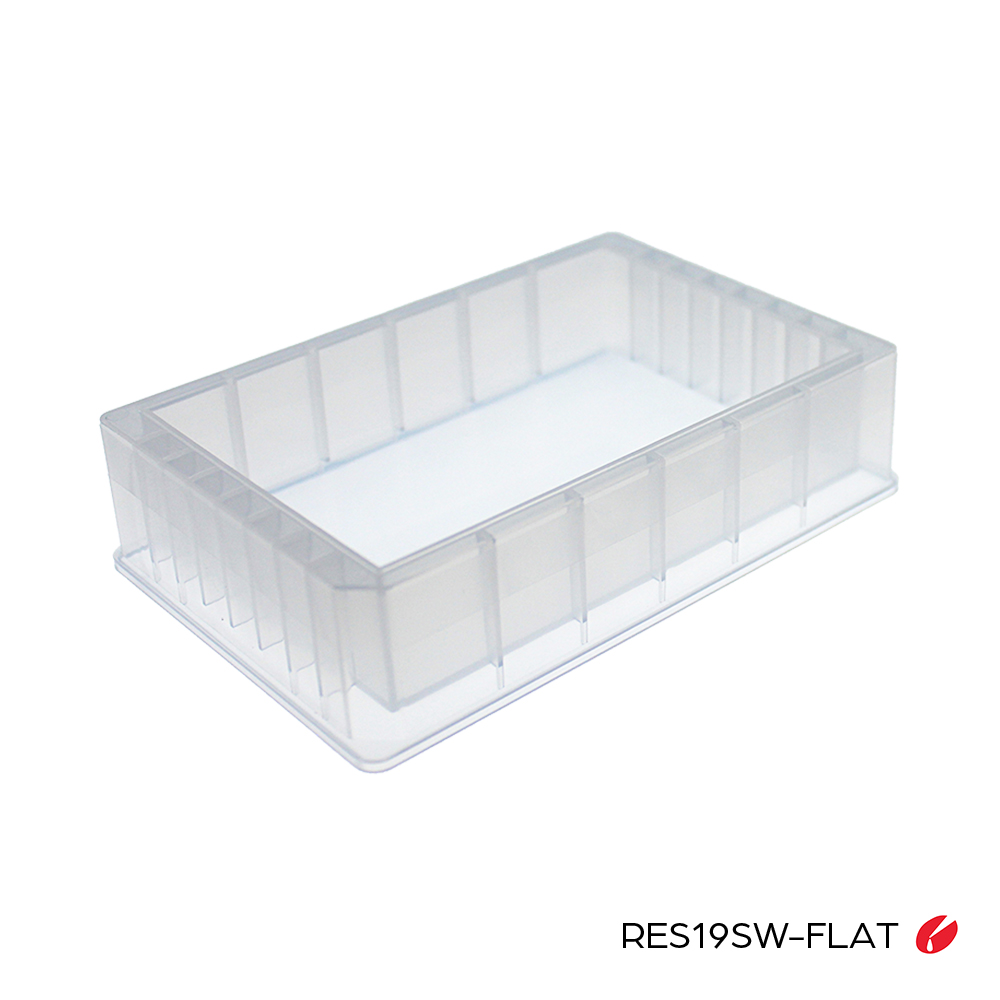 | RES19SW-FLAT | Reservoir, Mid Height, Single Well, 190mL, with flat bottom, Natural, Non-Sterile | 50 / Case | $258.50 |